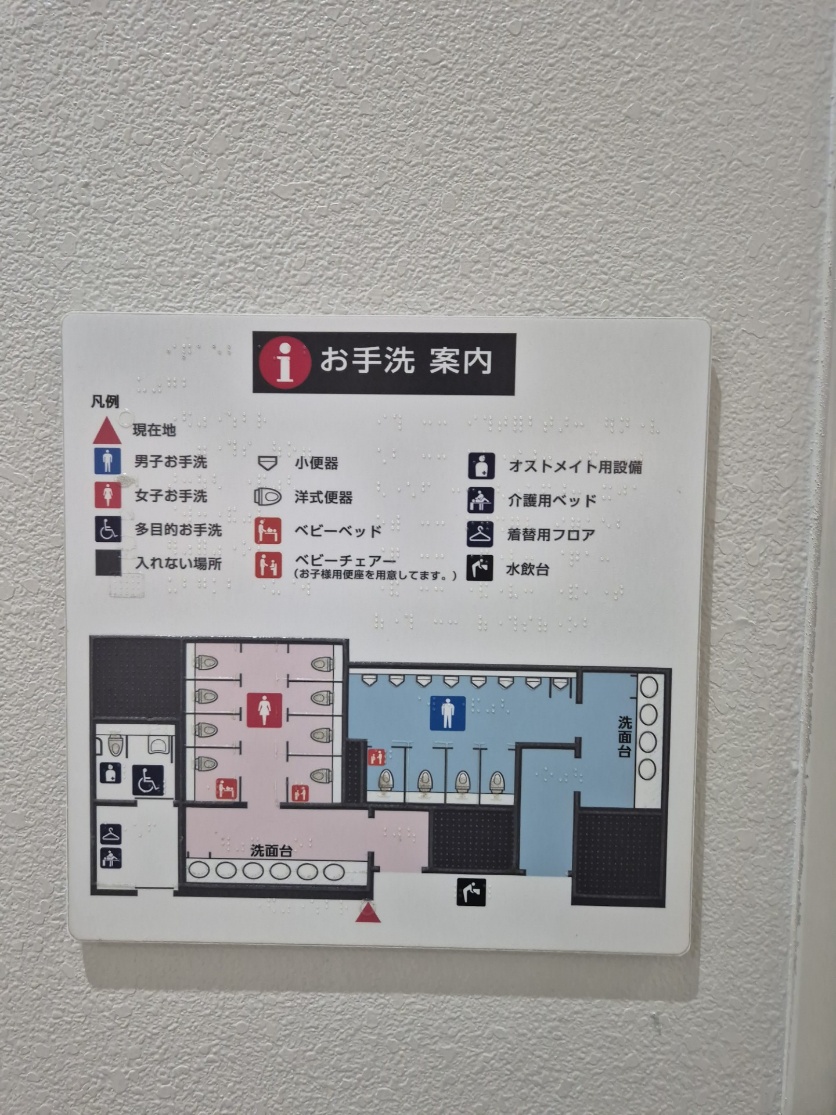 Figur 4: Oversiktskart med punktskrift over toalettrom i Japan. Dette gjør det enkelt for brukere å se hvilke type toaletter som er tilgjengelig og hva man står i kø til. Et behov uttrykt av Changing Places Norge, ettersom det ikke er alle typer HC toaletter som er tilgjengelige for alle brukere. Foto: Anja Fleten Nielsen.