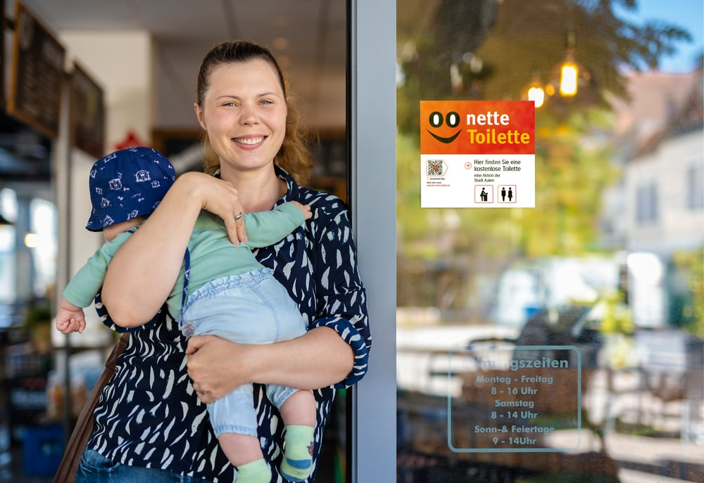 I Tyskland har myndighetene betalt kafeer og restauranter for å holde toalettene åpne for offentligheten selv om du ikke er betalende gjest. Serveringsstedene som er med i løsningen er skiltet med «nette Toilette».