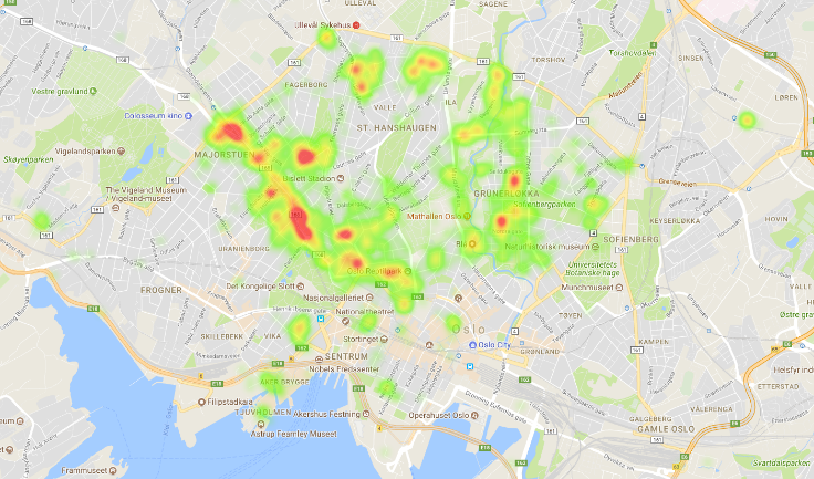 I etter-situasjonen ble pakkene som skulle leveres med sykkel i Oslo sentrum fraktet til mikrodepotet på Filipstad med en stor varebil. Pakkene var ferdigsortert i bokser som kunne puttes direkte inn i lasterommene på sykkelen. Store pakker ble fortsatt levert med varebil fra Berger til det området sykkelen dekker. Dette medførte en endring i sorteringsrutinene på Berger, der store og små pakker ble skilt i to produksjonslinjer. Små pakker som skulle til samme mottaker som store pakker, ble imidlertid sortert sammen med de store pakkene. Innhenting av pakker i det området sykkelen dekker ble også håndtert med bil (Ørving, Fossheim, Weber, et al., 2018). Figur 2 viser eksempel på distribusjonsrute med bil og distribusjonsrute med sykkel i prosjektperioden. En bil kan dekke større område enn sykkel, og det er noe overlapp.