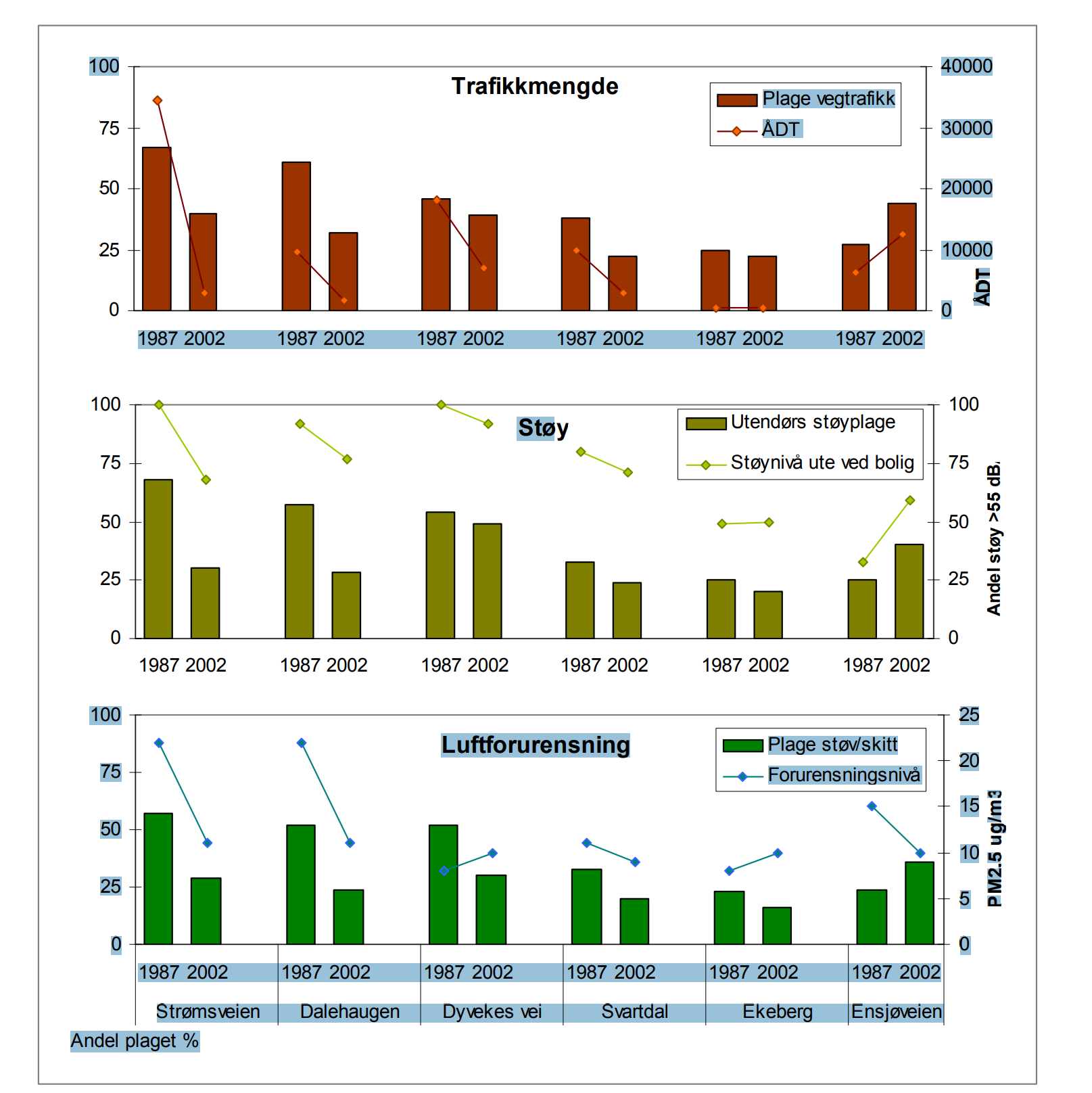 Kolbenstvedt, M. og Fyhri, A. (2004). Veger til bedre bymiljø. Miljøundersøkelser Oslo Øst: 1987-2002. Oslo, Transportøkonomisk institutt. TØI rapport 743/2004.